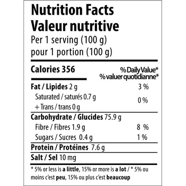 Ingredients: Brown rice (34.5%), yellow maize (30%), white maize (15%), rice (10%), tapioca Starch (7%), quinoa (3%), emulsifier E471 (0.5%)