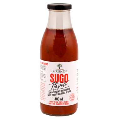 Tomato pulp, Tomato puree, Extra virgin olive oil, Onion, Carrots, Salt, Garlic, Sugar, Basil, Chives, Parsley, Oregano, Black pepper, Thyme, Citric acid. May contain: Fish, Milk, Soy, Tree nuts.
