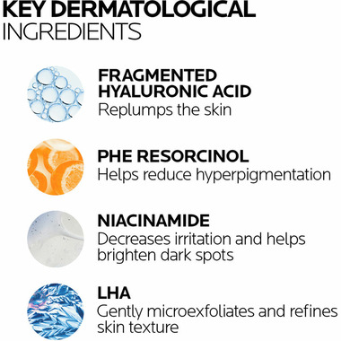 Aqua / Water / Eau, C12-15 Alkyl Benzoate, Glycerin, Ethylhexyl Salicylate, Zea Mays Starch / Corn Starch, Niacinamide, Bis-ethylhexyloxyphenol Methoxyphenyl Triazine, Phenylbenzimidazole Sulfonic Acid, Dimethicone, Triethanolamine, Butyl Methoxydibenzoylmethane, Silica, Potassium Cetyl Phosphate, Drometrizole Trisiloxane, Stearyl Alcohol, Glyceryl Stearate, Glyceryl Stearate Citrate, Peg-100 Stearate, Ammonium Polyacryloyldimethyl Taurate, Capryloyl Salicylic Acid, Caprylyl Glycol, Hydrolyzed Hyaluronic Acid, Phenoxyethanol, Phenylethyl Resorcinol, Poloxamer 338, Terephthalylidene Dicamphor Sulfonic Acid, Tocopherol, Trisodium Ethylenediamine Disuccinate, Tromethamine, Xanthan Gum