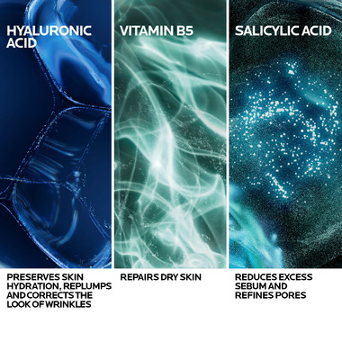- Advanced formula with hyaluronic acid, salicylic acid, airlicium, and vitamin B5 delivers deep hydration, refines skin texture, reduces sebum by 32 percent in 15 minutes, and helps smooth the appearance of fine lines