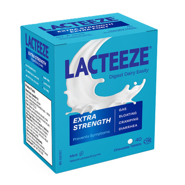 Lacteeze Extra Strength Lactase Enzyme facilitates the natural digestion of milk, cheese, ice cream, pizza, and other dairy-containing foods, allowing you to enjoy them without discomfort.