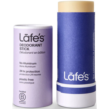 Lafe's Lavender & Aloe Paper Barrel Natural Stick Deodorant is Paraben Free and Baking Soda Free with proven 24-Hour Protection using natural botanical essential oils without the use of harmful chemicals.
