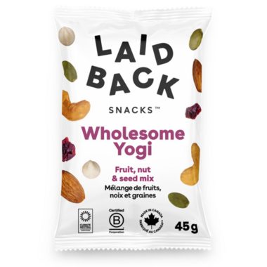 Invite good karma into your day with Wholesome Yogi. This mix of heart healthy nuts is well balanced with nutritious pumpkin seeds, flavour-filled cranberries, and topped with Greek yogurt chips to help support healthy digestion. Remember to breathe and enjoy one of the most nutritionally beneficial snacks Laid Back Snacks offer. Wholesome Yogi will leave you feeling like you’ve just woken from a long, deep savasana. Namaste!