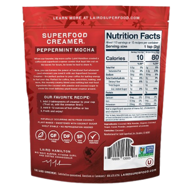 The Laird Peppermint Mocha Superfood Creamer combines their award winning Original Superfood Creamer with raw, organic cacao and peppermint for a fresh spin on a peppermint mocha!