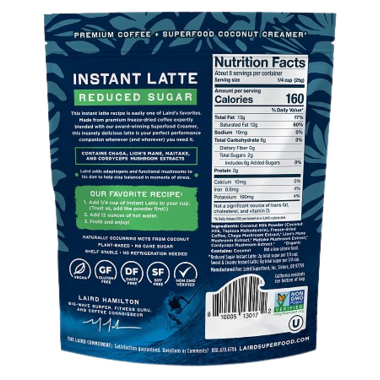 Laird Superfood Reduced Sugar Instant Latte with Adaptogens