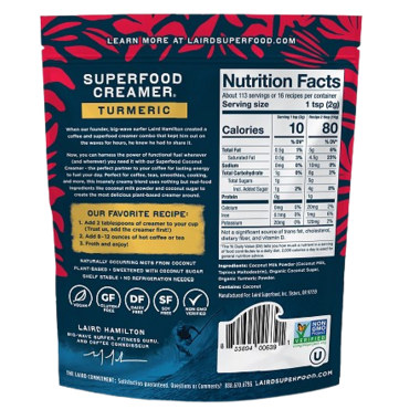 The Laird Superfood Creamer Infused with Organic Turmeric is a