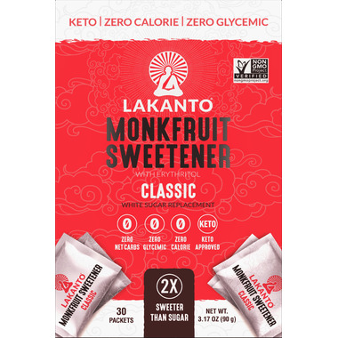 Lakanto Monkfruit Sweetener with Erythritol Classic is a great replace for white sugar. Made with zero net carbs, zero glycemic and zero calorie, this sweetener is keto approved.