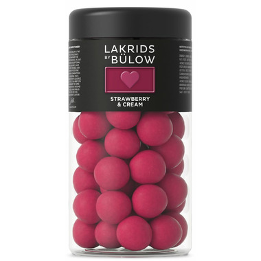 50% White chocolate (sugar, cocoa butter, whole milk powder, emulsifier: soy lecithin, natural vanilla flavour), Sugars (sugar, invert sugar syrup, treacle, glucose syrup), Rice flour, Cocoa butter, Whole milk powder, 3% Strawberry (freeze-dried), 2% Raw liquorice, Rapeseed oil, Salt, 0.4% Vanilla flavoured cream powder (cream (spray-dried), natural flavour), Glazing agents (gum arabic, carnauba wax), Acid: malic acid, Emulsifier: soy lecithin, Natural flavours, Colour: carmine, Anise oil.?Contains: Milk, Soy.