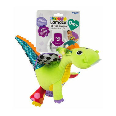 Baby will love to watch Lamaze Flip Flap Dragon flapping his wings! Pull the white clip to make his vibrant, satin purple wings flip and flap back and forth. Baby can also explore his crinkly feet and squeaky nose. Featuring soft fabrics in a variety of contrasting colours with six different materials your baby can explore and develop their senses. The Lamaze clip lets you hook Flip Flap to strollers, carriers and diaper bags to take him along for on-the-go fun.