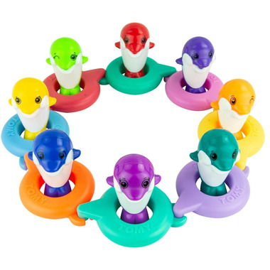 Eight colourful dolphins floating along in their matching inner tubes. Tap on their head to hear their dolphin sounds, colour matching fun, learn how things go together. This symphony is perfect to float around in your tub or pool.