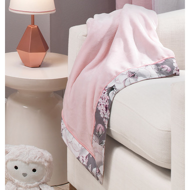 Cuddle up with your little one with this luxuriously soft baby blanket.  It is a pretty pink lux coral fleece with a gorgeous gray ground floral watercolor printed border.  This blanket is 30” X 40” and is the perfect size for a stroller blanket, going to the park and running errands.  It makes a great baby shower gift too.