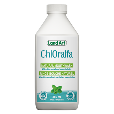 ChlOralfa by Land Art is a 100% natural, concentrated mouthwash that combines the benefits of chlorophyll, xylitol, and essential oils for fresh breath and optimal oral hygiene, without sugar or detergents.