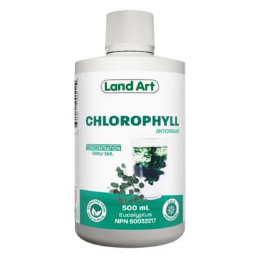 Land Art’s chlorophyll is extracted from alfalfa and has numerous properties, including the purification of the blood by oxygenating red blood cells and helping the system to release toxins. This product also helps to alkalinize and deodorize the body.