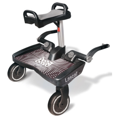 - Lascals BuggyBoard is the brilliant solution for transporting two children in your single stroller, with the older sibling simply riding along on the board when needed. Eliminates the need for a heavy and cumbersome double or tandem stroller!