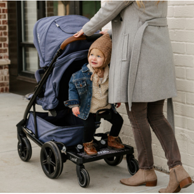 BuggyBoard Maxi+ is the brilliant solution for pushing 2 children in a single stroller. The older child can stand forward-facing or sit rear-facing. Compatible with 95% of all strollers on the market.