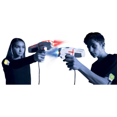 Laser X is the #1 Home Laser Tag game on the Planet! It is like having your own Laser Tag Arena! Includes 2 Laser X Blasters with Arm Receivers to equip 2 Laser X players that allow you to blast your opponent’s arm receivers from up to 200’ away. Enjoy playing in teams or as individuals. Full-color lighting effects let you keep track of shots and hits. Laser X works inside or outside–day or night and all Laser X gear work together. Requires 6 AAA Batteries (Not included). Does not use Laser. Infrared beam is NOT visible. Ages 6+.