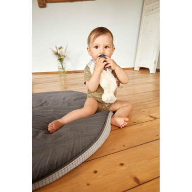 Play and Explore! The adorable baby comforter with its pacifier holder from Lassig Tiny Farmer collection takes young nature lovers on an exciting discovery tour in the country. The fabric is made of 100% certified organic cotton (GOTS) and is therefore especially skin-friendly and soft on your babys delicate skin. The waddling goose and the fluffy sheep are silent companions that don't squeak or make a rustling noise.