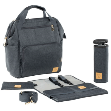 The convenient clasp and a well-organized interior ensures you have everything at your fingertips. Large compartments and accessories such as a water-repellent changing mat, an insulated, removable bottle holder, a removable compartment for baby food jars, a cell phone compartment, key ring and much more make the Goldie Backpack a really practical and commodious holdall. In less than no time, the backpack can be turned into a shoulder bag thanks to the extra shoulder strap. And the stroller hooks make it possible to remove the bag from your shoulder and directly attach it to the stroller or bike trailer. That is back-friendly and convenient as well.