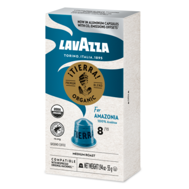 Lavazza iTierra Organic For Amazonia Nespresso Original Compatible Capsules. A hand-picked selection of organic 100% Arabica from Peru. Full-bodied and aromatic blend with a chocolate and caramel aftertaste.