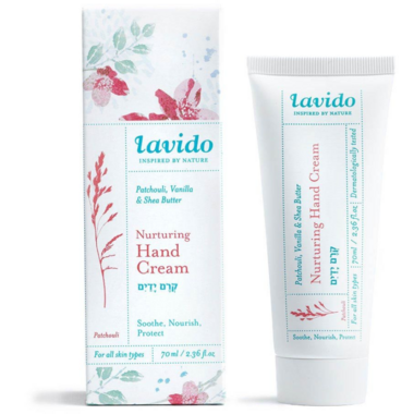 This Lavido Nurturing Hand Cream Patchouli, Vanilla & Shea Butter super rich hand cream sinks right in and leaves your skin feeling soft, supple and moisturized. Also, unlike most hand creams, this one helps to smooth and decrease wrinkles because it contains Hyaluronic Acid. Can soothe and repair even extremely dry and chafted skin. Suitable for all skin types.