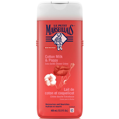 Le Petit Marseillais Cotton Milk & Poppy Extra Gentle Shower Crème gently cleanses, while moisturizing your skin. Its smooth and easy to rinse foam reveals a delightfully sweet and rich fragrance. Skin is left feeling soft, smooth and nourished.