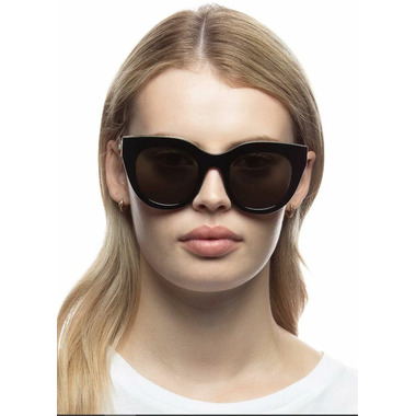 Oversized and dramatic proportions reminiscent of a cat-eye. Designed with a thick frame and luxurious metal top bar inlay, then fitted with premium zero base smoke flat lenses.