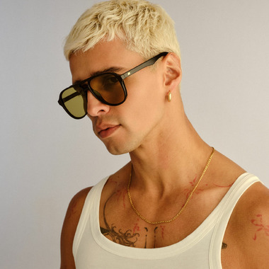 Exuding a carefree spirit and effortless aesthetic, TRAGIC MAGIC is the must-have aviator sunglass for summer. This '70s inspired silhouette offers a slightly oversized fit with flattering unisex proportions and is detailed with their understated pyramid stud hardware on both temples.
