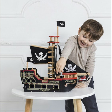 All aboard this classic, award-winning wooden toy boat, made from solid, sustainable FSC- certified wood and painted in striking black with gold detailing, using non-toxic, water-based paints for child safe play. Packed full of realistic features, this toy makes a truly special gift, built to last for a lifetime of play.