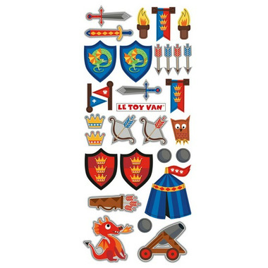 This striking wooden toy castle makes a wonderful first toy for little adventurers. Spark an interest in play and encourage young imaginations with this traditional toy. Sitting proudly, this castle with its smart red turrets and flags flying, looks great in the kids room and has many exciting features to discover, including towers, windows and a lifting drawbridge. Little crafters will love the set of stickers for adding their own personal touch. Finished in a grey stonework effect and decorated with stunningly detailed illustrations, including motif's of a crown and three proud lions. All using non-toxic water-based stain, for safe play.