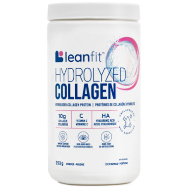 LEANFIT HYDROLYZED COLLAGEN Unflavoured is great for immune support, bone and joint support, and healthy hair, skin, and nails! It's water-soluble, flavourless, and mixes easily with your favourite snacks, meals, or drinks. Enjoy 10g of grass-fed collagen with added vitamin C, hyaluronic acid, and bamboo silicon in one daily scoop for extra immune support and to promote the body's natural collagen production.