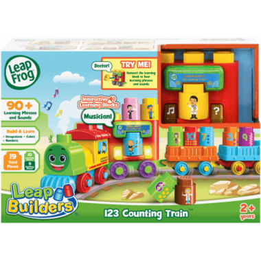 All aboard the LeapBuilders® 123 Counting Train™! Build, create and learn with this interactive 19-piece train-themed block set.