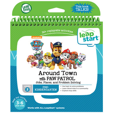 Level 2 Activity Book. Join the PAW Patrol and use the pup's special skills to help the people of Adventure Bay in the Around Town with PAW Patrol activity book for LeapStart. This interactive book featuring favourite pups introduces school skills such as position words, maps and professions, and builds life skills such as logic and problem-solving. Use the stylus to complete more than 30 interactive and replayable activities. Send Marshall to rescue someone at the beach, help Everest through a popcorn maze or guide Rubble and his tractor loader to clear the road. No job is too big, no pup is too small!
