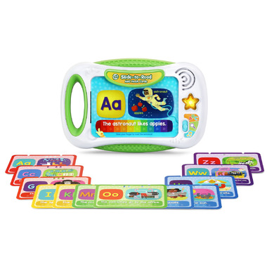 Slide into reading with the Slide-to-Read ABC Flash Cards. From A-Z, the 13 double-sided cards feature letters, words, sentences and colorful pictures. Learning our ABCs is as easy as counting 1, 2, 3. Preschoolers can touch the card to explore a letter sound, words that begin with that letter and a silly animal sentence. The mouse makes milkshakes! Slide your finger across the sentences from left to right, fast or slow, to follow along while hearing it read aloud.