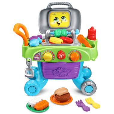 Keep learning on the menu with the Smart Sizzlin’ BBQ Grill™! Little grill masters can pretend to grill by securely placing eight different play food items on the interactive skewer.