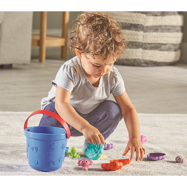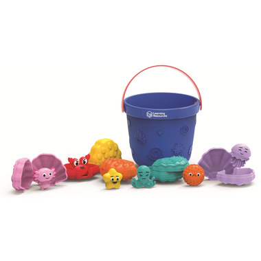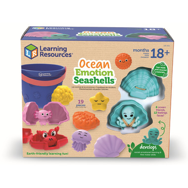 These undersea friends help kids feel their biggest feelings! Kids strengthen their social-emotional skills with the help of 6 ocean friendseach double-sided sea creature figure feature two unique expressions for identifying and comparing feelings. Expand the learning fun with 6 pop-apart seashells that help kids build fine motor and memory skills as they play. All pieces store inside the reusable pail for easy cleanup. This sustainable toy is made with 70% post-consumer recycled plastic!