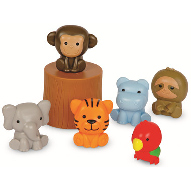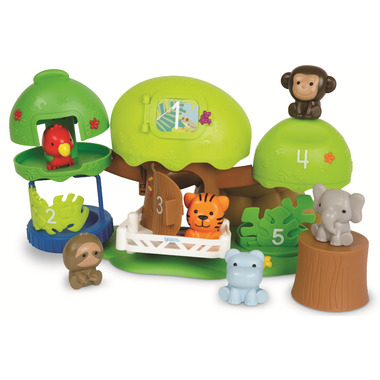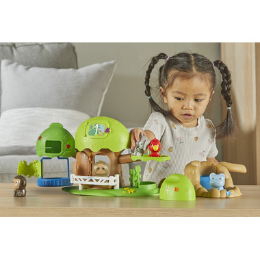 Looking for an easy way to help kids learn preschool fine motor skills? Kids discover the wilder side of Peeksville when they play and learn with this surprise-filled jungle! This fold-out peekaboo playset is a great way to build fine motor skills for kidsswing from the trees, slide down the waterslide, or find plastic animals behind doors and hidden nooks! How does this peekaboo toy help kids learn? Each peekaboo action helps kids build fine motor skills while learning cause-and-effect and memory skills! Best of all, this set also includes an imaginative storybook activity guide packed with skill-building fun! Made from durable plastic, the Peeksville Learning Safari Playset makes an easy addition to collections of farm toys, barn toys, and Montessori toys for kids.