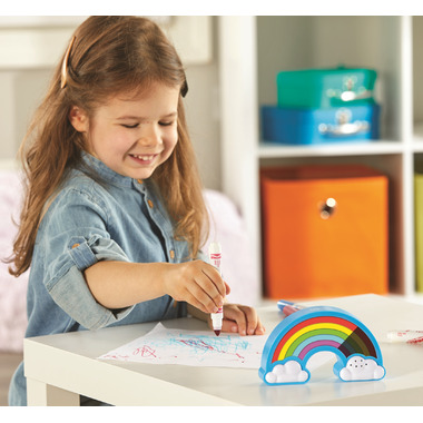 This electronic timer is a colourful way to track time! It has five settings (1, 3, 5, 10, and 15 minutes) and bright rainbow stripes light up or go dark to show elapsed time. Plus, it doubles as a night-light!