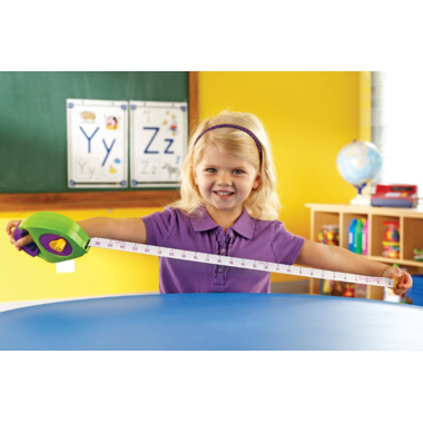 Your youngest students will love working with this perfectly-sized, manual-wind tape measure. Appealing, contemporary design and simplified features (inches and feet on one side of the tape, centimeters and meter on the other). Measures up to 4 feet–perfect for comparing heights!