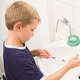 Press the button, start brushing, and follow along with lights and sounds that let you know when its time to stop. Includes 2 AAA batteries.