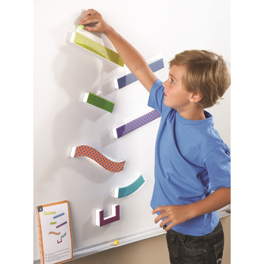 Inspire kids to use critical thinking skills to create their own unique marble runs with long, short, and curved magnetic pieces! Drop a marble to see each design come to life. Engineering and problem solving have never been this much fun! Kids can rearrange the pieces countless ways to make the marble change speed and directions.