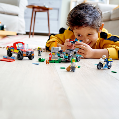 Kids who like action-packed play will love the LEGO City Fire Rescue & Police Chase (60319) playset. Its packed with story-inspiring details and cool vehicles, including a fire pickup with a drone, a police motorbike and a crook's getaway car. Just add the cat figure and 3 mini figures, including firefighter Bob from the LEGO City Adventures TV series, and let the play begin!
