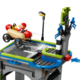 - FUN FEATURES Kids place the hot dog and toilet soapbox cars at the ramps peak and flick a lever to send them hurtling towards the finish line