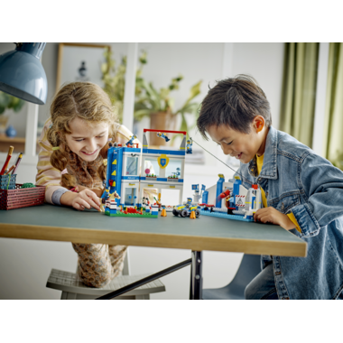 - What's in the box? - Includes a 2-level police station with lots of outdoor academy training facilities for the LEGO City police officers, plus a toy ATV, 6 minifigures and a horse figure