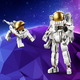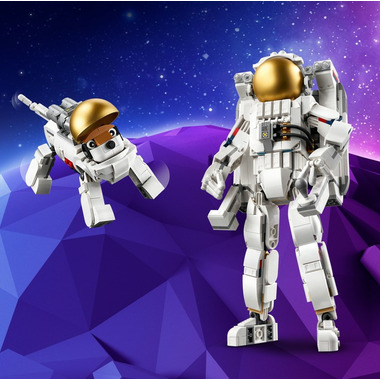 Boys and girls can build 3 different space playsets: a posable space astronaut figure, a futuristic space dog with posable legs and tail, or a space viper jet with a seat for a minifigure (not included) to pilot it. All 3 models make great space-themed creative gifts and come with stands for display.