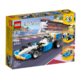 Enjoy racing adventures with the LEGO Creator Extreme Engines set, featuring a Race Car with a sporty blue, white, yellow and black color scheme and authentic detailing, including a large rear engine, side air intakes and wide rims with low profile tires. This 3-in-1 construction toy also features adjustable wing mirrors and rear spoiler and rebuilds into a Hot Rod or a Speedboat for further racing action and adventure.