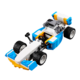 The 3-in-1 Extreme Engines set features a rebuildable Race Car with lots of authentic details, including a large rear engine, side air intakes, wide rims with low profile tires and adjustable wing mirrors and rear spoiler. Features a blue, white, yellow and black color scheme. Adjust the wing mirrors, set the rear spoiler for maximum speed, take your position on the start line and prepare for some high-speed action.