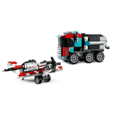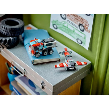 Fast-paced adventures await boys and girls aged 7 and up with the LEGO Creator Flatbed Truck with Helicopter (31146) playset. They can use the 3in1 set's 270 pieces to build a cool transporter truck toy with moving wheels that can carry a LEGO helicopter with moving rotor blades on its trailer. Kids can build 3 different vehicle toy sets containing 2 separate vehicles with this LEGO Creator 3in1 toy. They have the chance to build the Flatbed Truck with Helicopter, rebuild it into a propeller plane toy and fuel truck with moving wheels, make a hot rod and SUV toy car set for races, or use the bricks to create their own vehicles. LEGO Creator 3in1 toys make great gifts for kids with 3 different models to create in every box. Kids will be excited to build, rebuild and build again. 3in1 sets keep them happy for countless hours and offer a range of models that appeal to their biggest passions, including superfast vehicles, amazing animals and detailed city scenes.