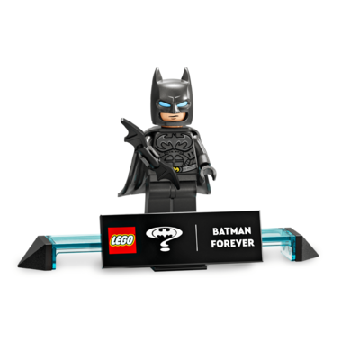 Race through Gotham City with the iconic LEGO DC Batman Forever Batmobile (76304), capturing the distinctive finned silhouette that Batman fans will instantly recognize. This authentically detailed collector's model kit recreates the unforgettable vehicle from the 1995 Batman Forever film with impressive accuracy. Builders and fans ages 12+ will appreciate challenging construction with detailed features including the molded windshield, rotatable wheels, sleek decorative elements, and a cockpit that opens to reveal an intricate interior dashboard and controls. The set includes an Batman mini figure with its own display stand and a vehicle information plate, making this both an impressive play piece and a striking display model. Whether showcased as sophisticated bedroom decor or used for Super Hero adventures, this Batman toy building set makes an exceptional gift for DC fans and vehicle enthusiasts alike. Contains 909 pieces.