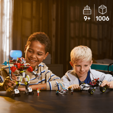 Kids can build a robot and racecar with the LEGO DREAMZzz Coopers Tiger Mech & Zeros Hot Rod Car (71497) toy for boys and girls ages 9 and up. This toy building set is inspired by the TV series for kids and lets them join hero Cooper on an epic adventure to save an innocent dreamer. Kids can choose from 2 exciting building options: make a red gaming aircraft before rebuilding it as a tiger mech and hot rod car, or as a speedy racing car and robot creature. The LEGO mech and robot toys are posable, and both building modes packed with fun features. The race car playset includes Cooper, Zero and a dreamer mini figure, plus Z-Blob, a Cyber Brain Spider and 2 Cyberlings. This set of characters helps kids bring the action to life and spark hours of imaginative play. Give it as a gift for kids who love the LEGO DREAMZzz TV series or toy cars and robot toys. Contains 1,006 pieces.