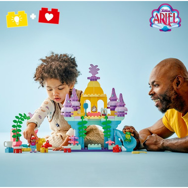 Immerse fans of Disneys The Little Mermaid in a world of undersea fun with the LEGO DUPLO | Disney Ariels Magical Underwater Palace (10435) building toy for preschool kids. Toddlers aged 2+ use their logical thinking and self-expression to recreate scenes from the Disney Junior TV show Ariel. Toddlers help the Disney Princess Ariel LEGO DUPLO figure to get ready in her bedroom. She then hits the dancefloor, with Fernie and Sebastian playing musical instruments. These are just some of many accessories that inspire toddlers to invent stories about Ariel and her friends. By role-playing the characters, toddlers explore how to build relationships. This buildable educational toy also develops dexterity as toddlers spin the dancefloor and push the movable swing. Ariels undersea buildable castle toy also helps preschool kids practice fine motor skills and hand-eye coordination as they assemble this sets building bricks in their own creative way to make a display piece they'll be proud of.
